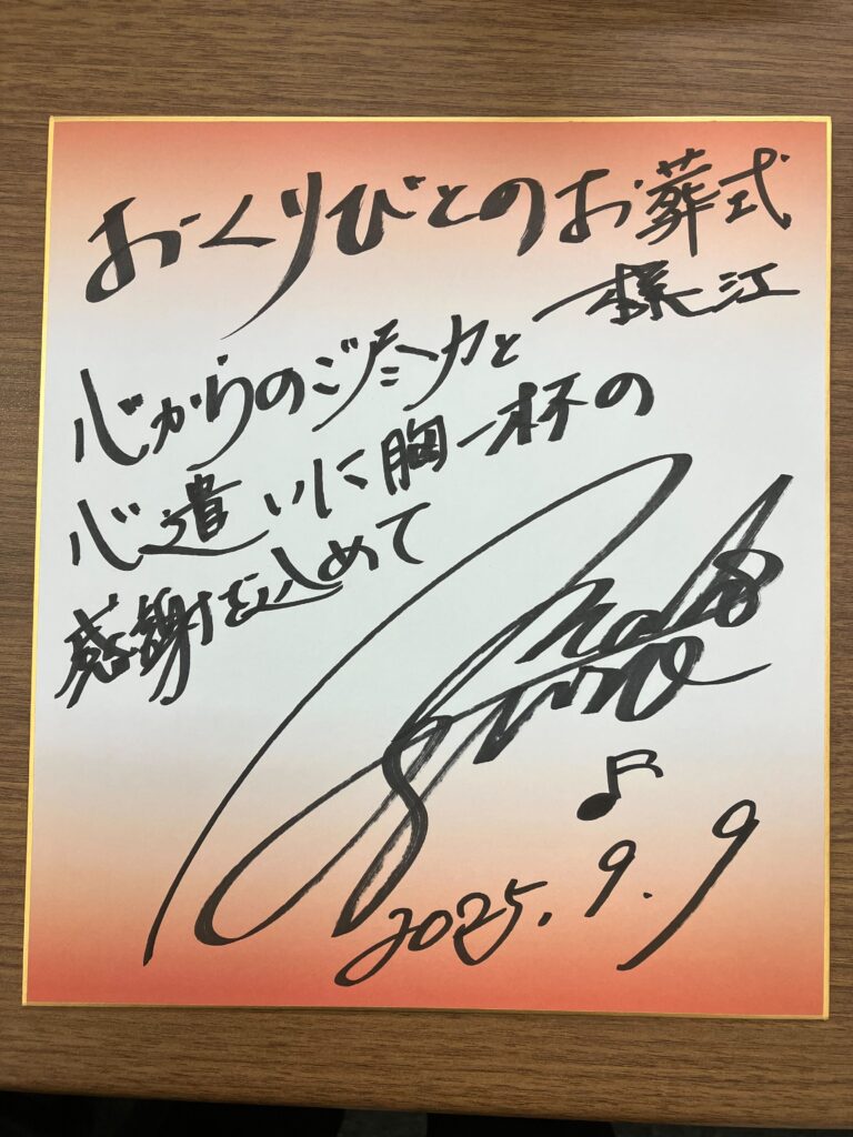 お別れの儀では、お姉さまの曲をお届けしながら、最後のお見送りとなりました。