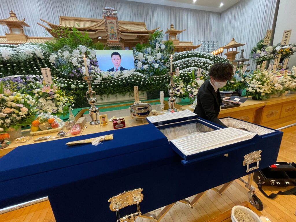 ご納棺には、假屋崎省吾様が手掛けられた棺をお選びいただき、華やかさと品格を兼ね備えた、誠に立派なお姿となりました。